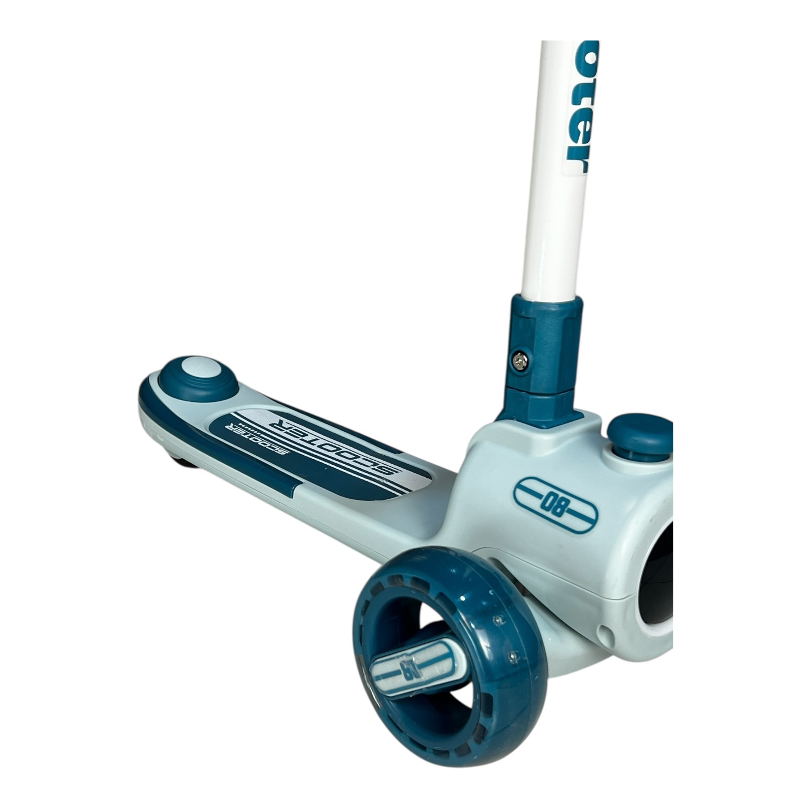 وجود موزیک شاد در کنار چراغهای رنگی، این اسکوتر را از یک وسیله حرکتی ساده فراتر میبرد و آن را به یک اسباببازی هیجانانگیز تبدیل میکند. این ترکیب صدا و نور باعث میشود کودک با اشتیاق بیشتری از اسکوتر استفاده کند، زمان بیشتری را به بازی فعال اختصاص دهد و تجربهای شاد، متفاوت و خاطرهانگیز داشته باشد.