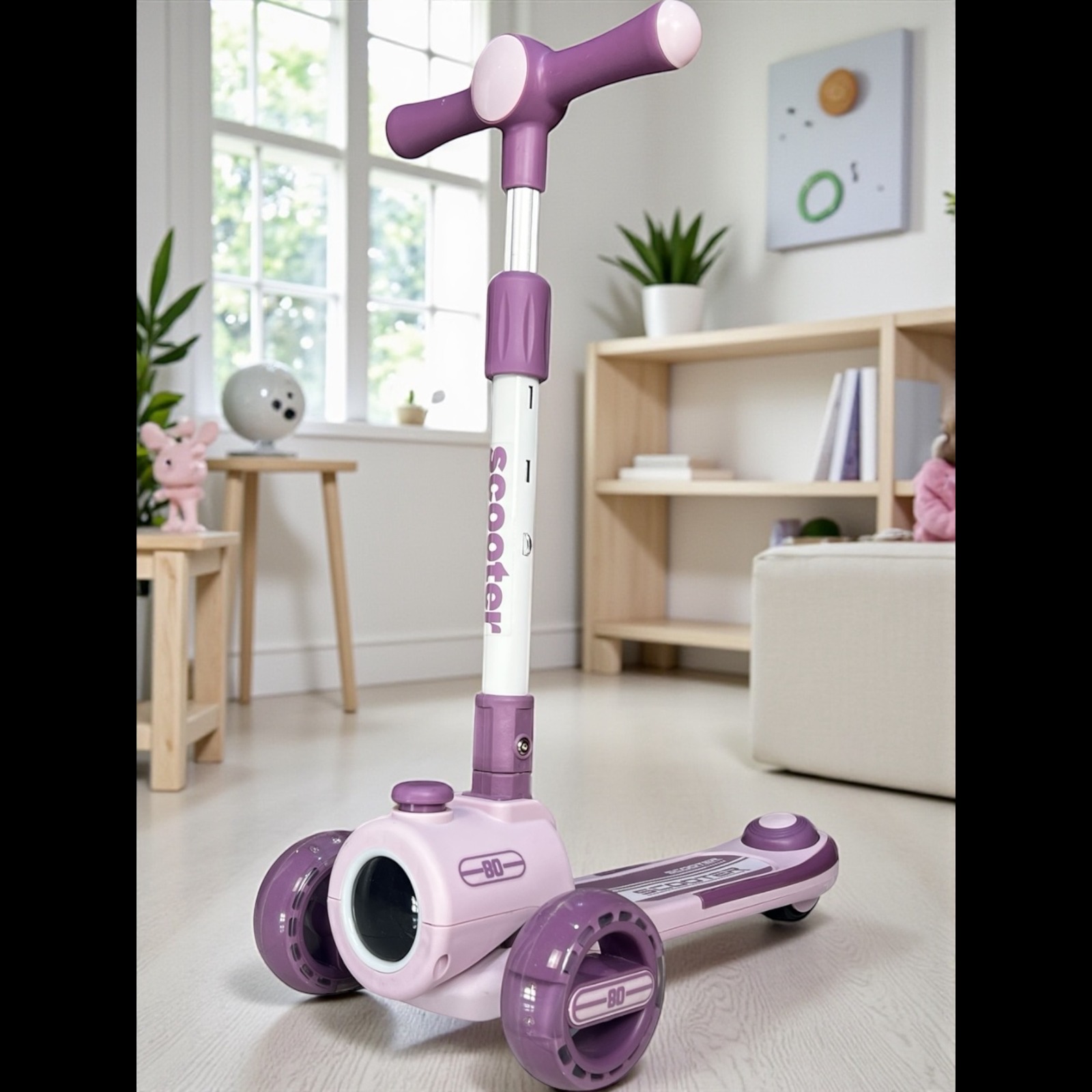 وجود موزیک شاد در کنار چراغهای رنگی، این اسکوتر را از یک وسیله حرکتی ساده فراتر میبرد و آن را به یک اسباببازی هیجانانگیز تبدیل میکند. این ترکیب صدا و نور باعث میشود کودک با اشتیاق بیشتری از اسکوتر استفاده کند، زمان بیشتری را به بازی فعال اختصاص دهد و تجربهای شاد، متفاوت و خاطرهانگیز داشته باشد.